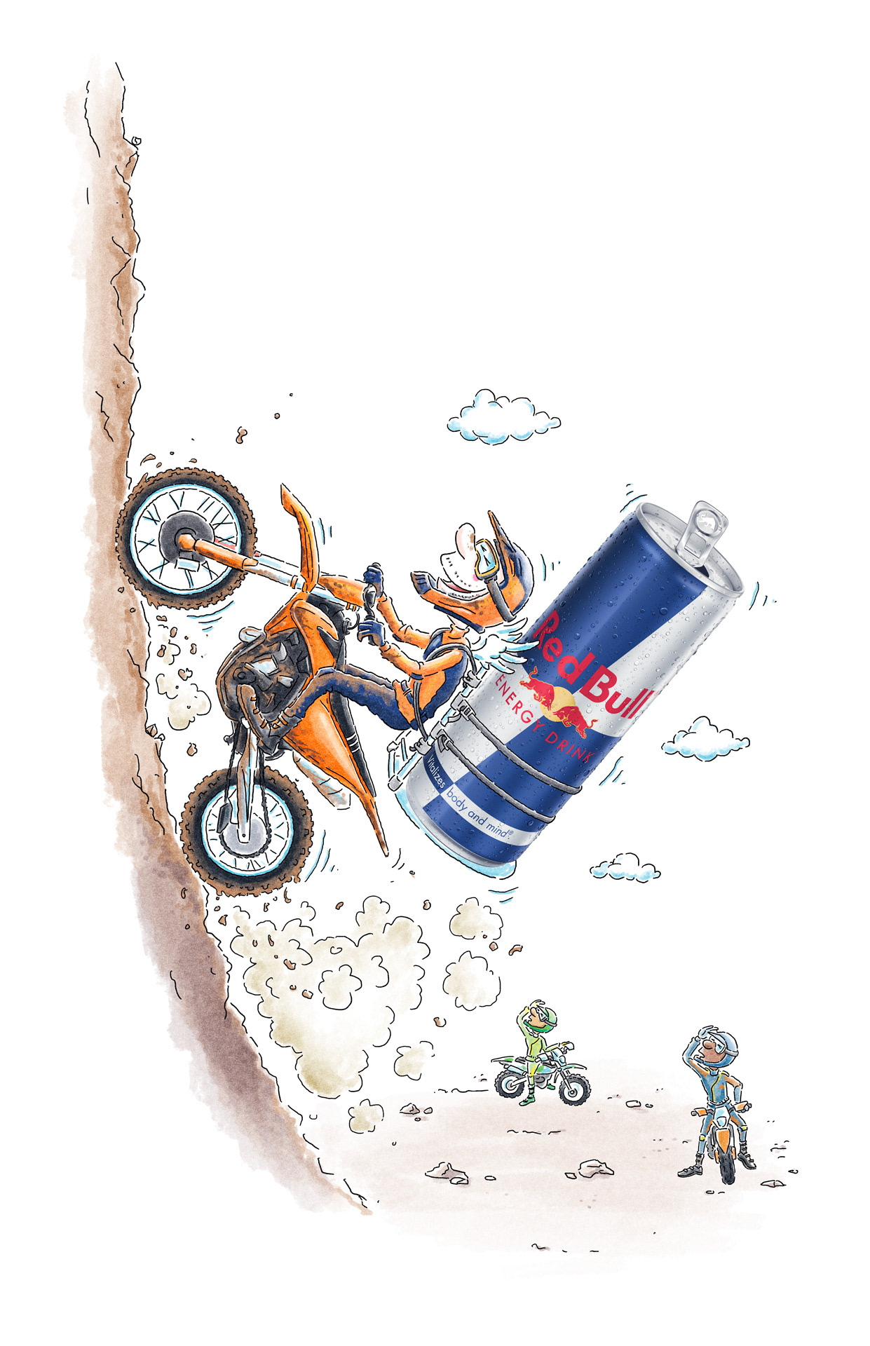 Diverse Illustrationen für Red Bull, weltweit eingesetzt auf Verpackungen, Postern, Straßenbahnen, Social Media ...